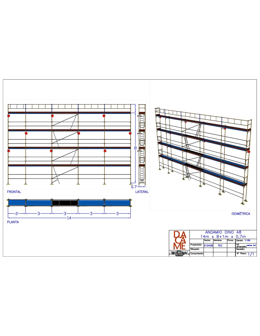 Andamio Europeo Dino 48 - 14 m. fachada y 8+1 m. altura - 126 m2