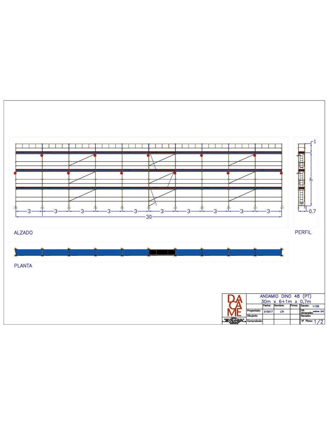 Andamio Europeo Dino 48 - 30 m. fachada y 6+1 m. altura - 210m2