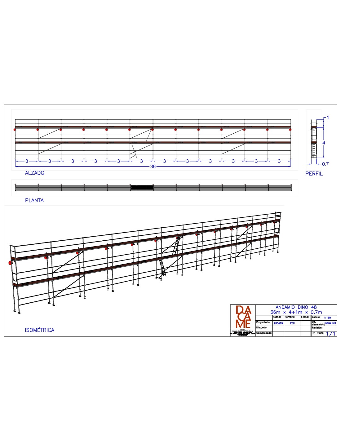 Andamio Europeo Dino 48 - 36 m. fachada y 4+1 m. altura - 180 m2