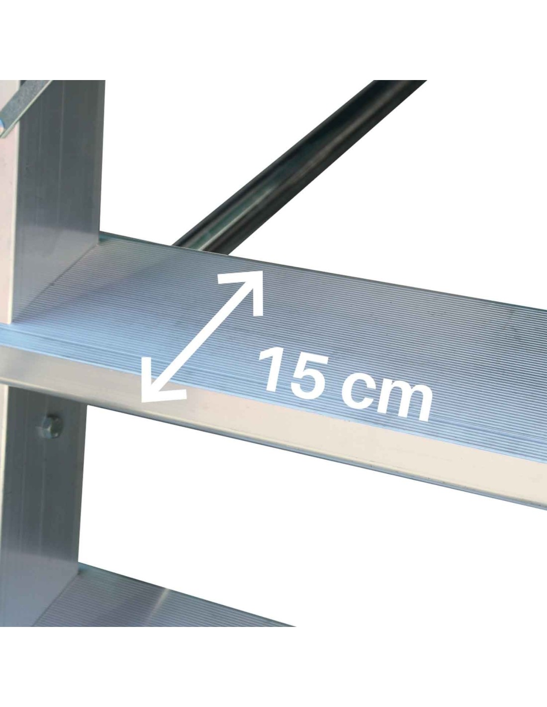 - Peldaños antideslizantes de 15 cm de profundidad.