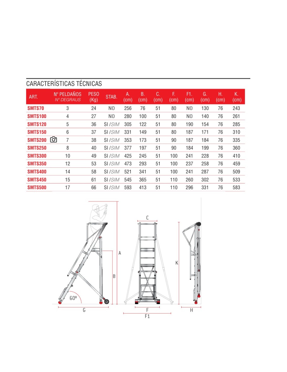 - 60º de inclinación para una subida cómoda y segura.