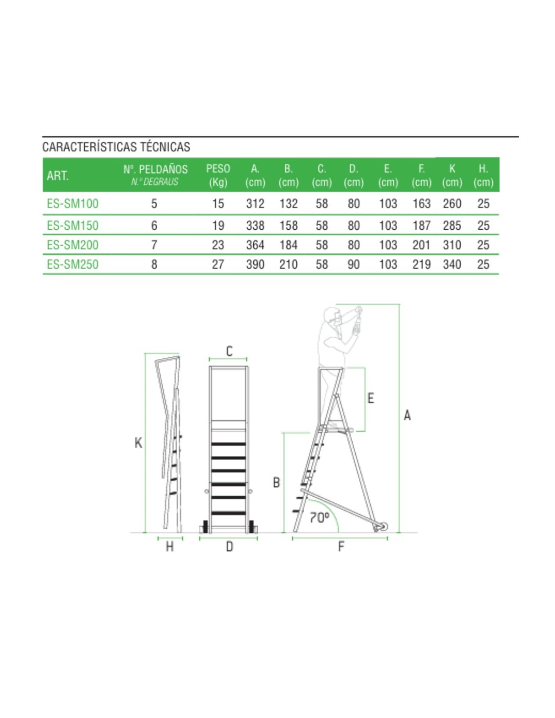 Escalera de almacén aluminio profesional 5 a 8 peldaños ESCALIBUR