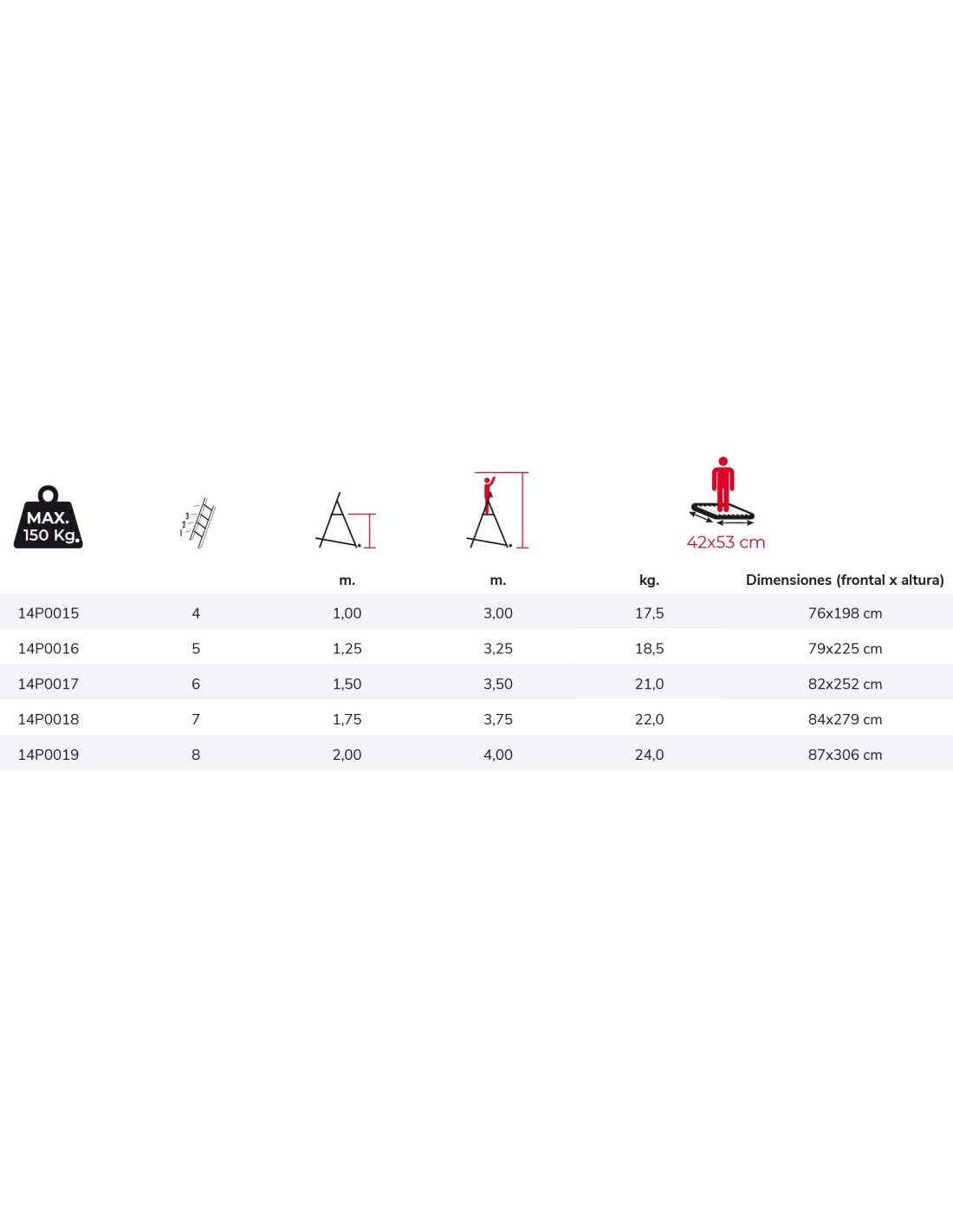 Disfruta de su diseño resistente, su fácil transporte y su funcionalidad, la plataforma es antideslizante de 42,5 x 53,5 cm y los peldaños antideslizantes reforzados.