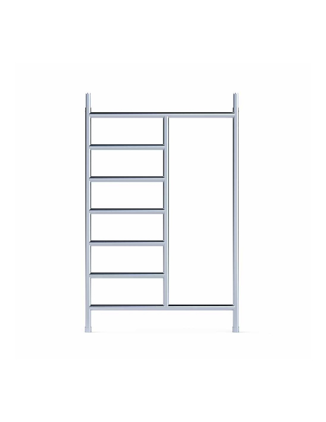 Marco de PASO estándar para andamios móviles de ancho de 135 cms, permite el paso entre varios andamios o torres. Este marco dispone de 7 peldaños y la distancia entre ellos es de 28 cms.