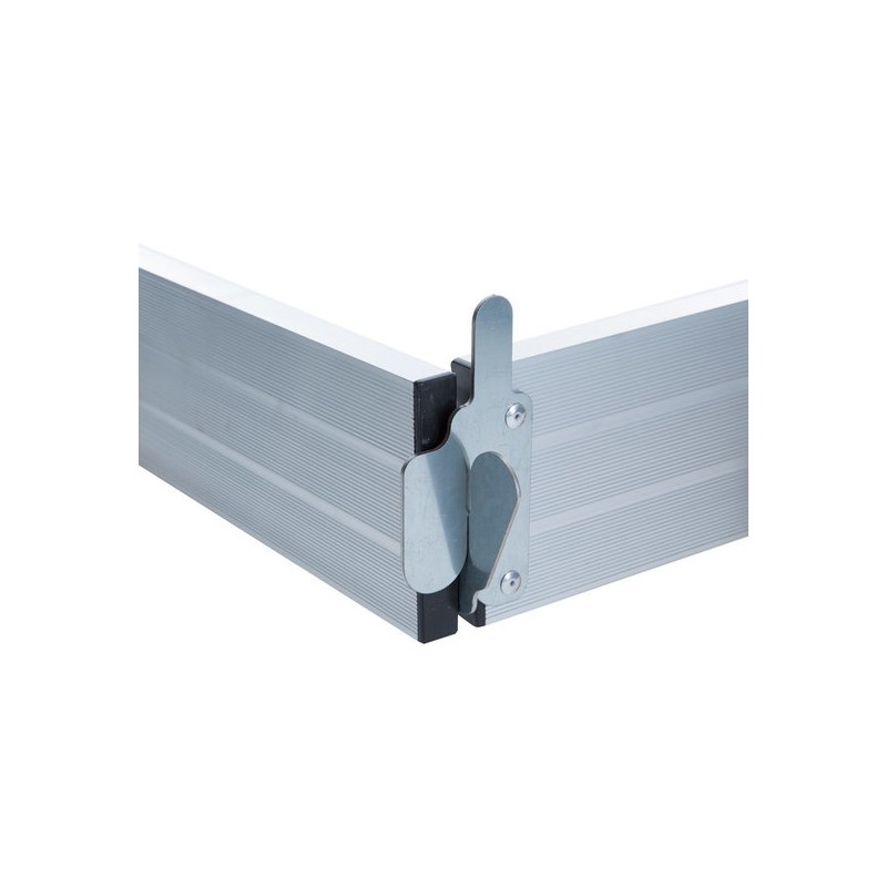 Juego de tablero lateral de andamio de aluminio para usar en andamios móviles. Es obligatorio colocar un juego de tablas laterales una vez que haya hecho su torre rodante, por encima de la altura de trabajo de 4 metros. Evita que el material o las herramientas se caigan.