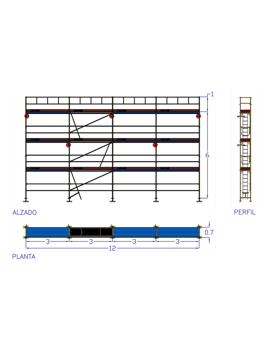 Andaime europeu Dino 48 - 12 m. fachada y 6+1 m. altura - 84 m2