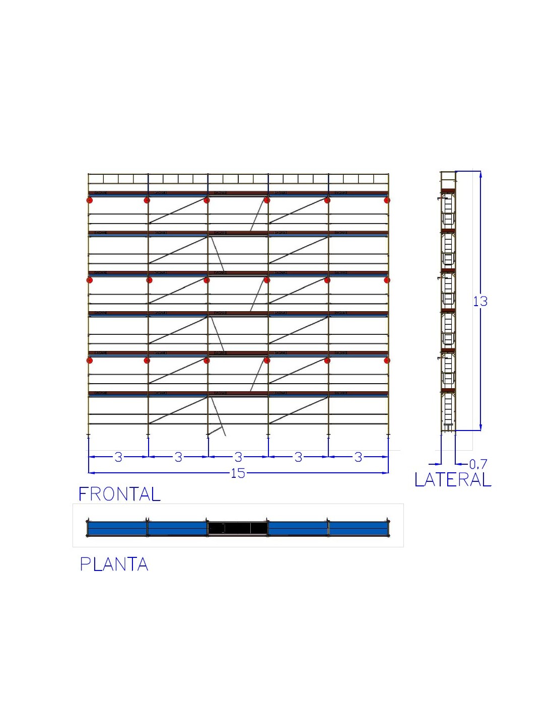 Andaime europeu Dino 48 - 15 m. de fachada e 12+1 m. altura - 195 m2