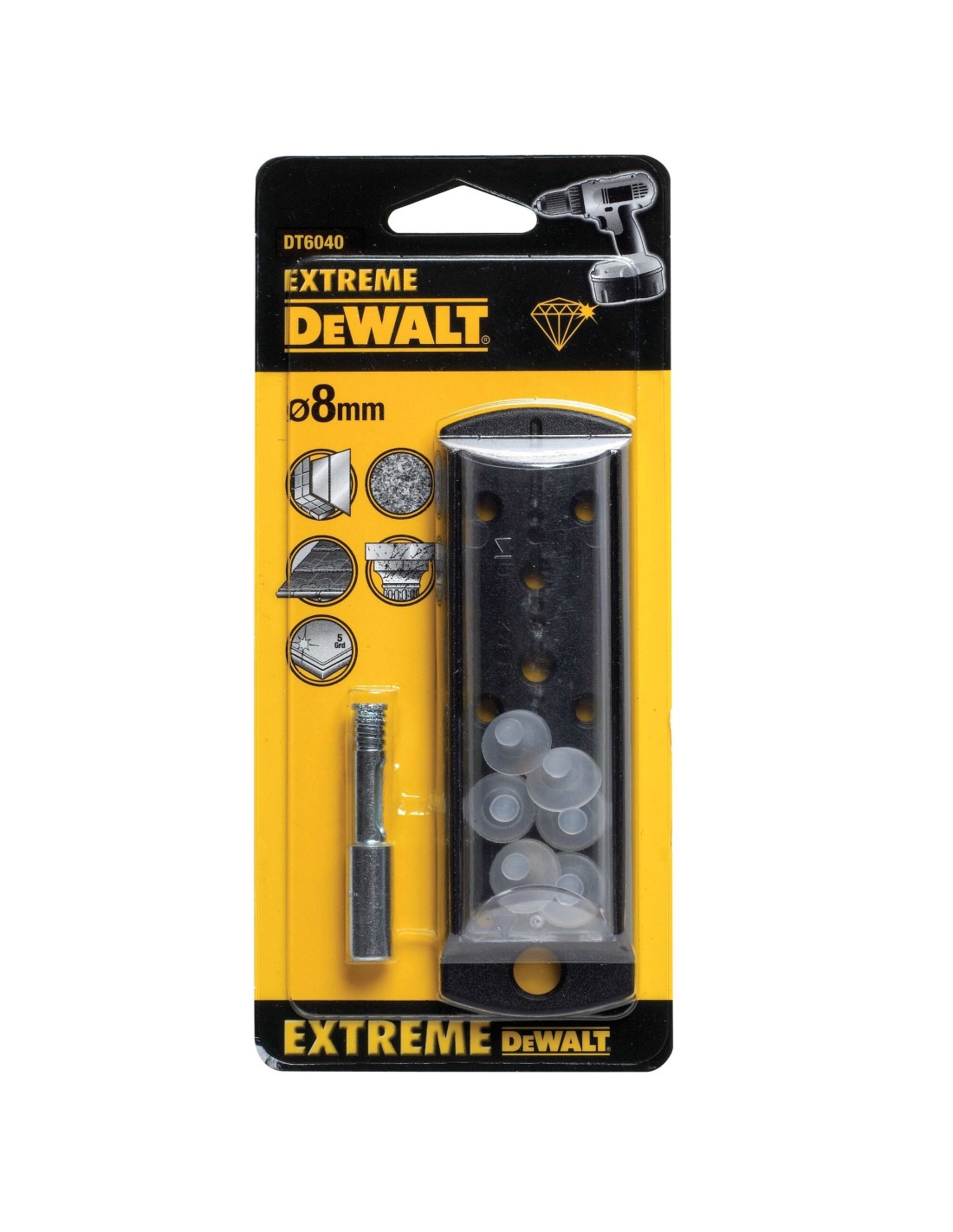 A cabeça com grãos diamantados (fortes e resistentes ao desgaste) permite um fácil início de perfuração a 45° do material. e cobre praticamente todas as durezas do ladrilho.
