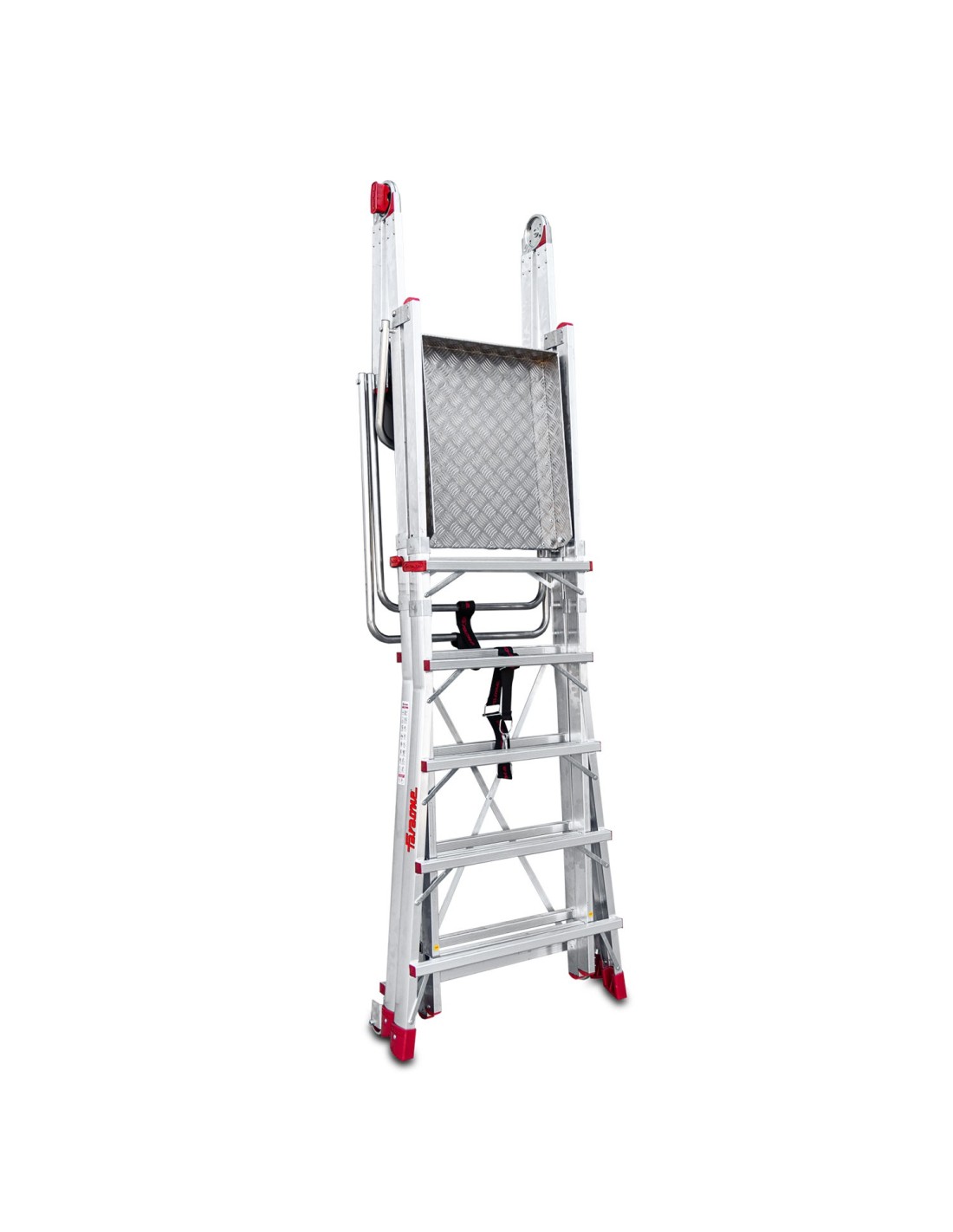 É uma escada geralmente utilizada em canteiros de obras por profissionais que desejam trabalhar com uma escada leve, fácil de transportar e segura.