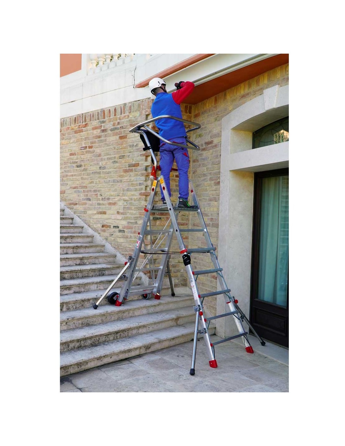 A escada PLS-COMPACT é uma solução profissional concebida para ambientes de trabalho que exigem estabilidade, segurança e flexibilidade. Está equipada com uma plataforma ampla, antiderrapante e regulável em altura, com 40x50 cm, sendo perfeita para trabalhos prolongados em altura.