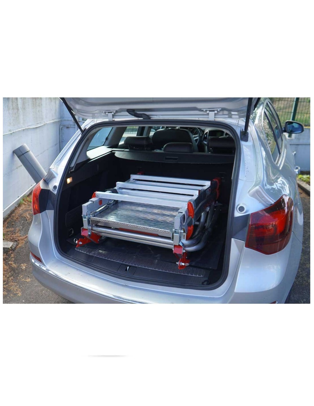 O seu design inclui um inovador sistema de dobragem com fecho antiabertura, garantindo uma utilização segura e prática. Fabricada em alumínio, é resistente e leve, e possui rodas duplas que facilitam o transporte, mesmo em ambientes de trabalho exigentes.