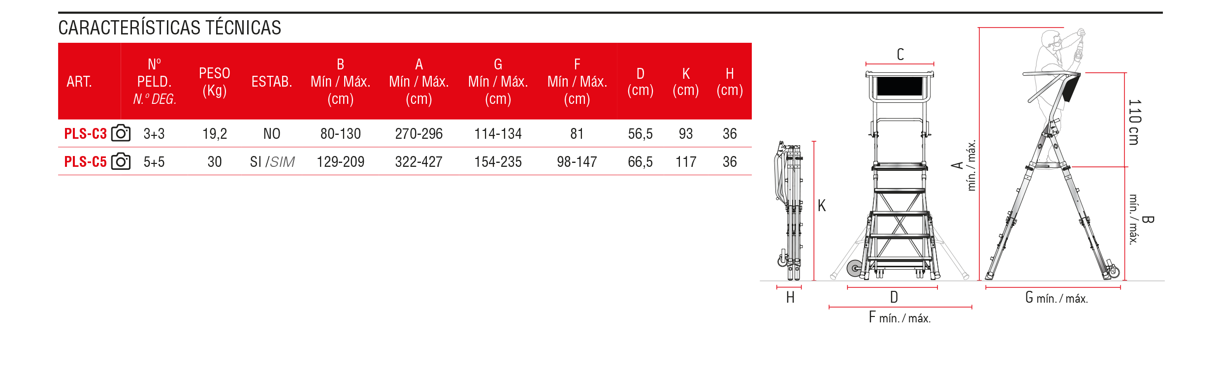 Peso: 19,2 kg (PLS-C3) / 30 kg (PLS-C5)