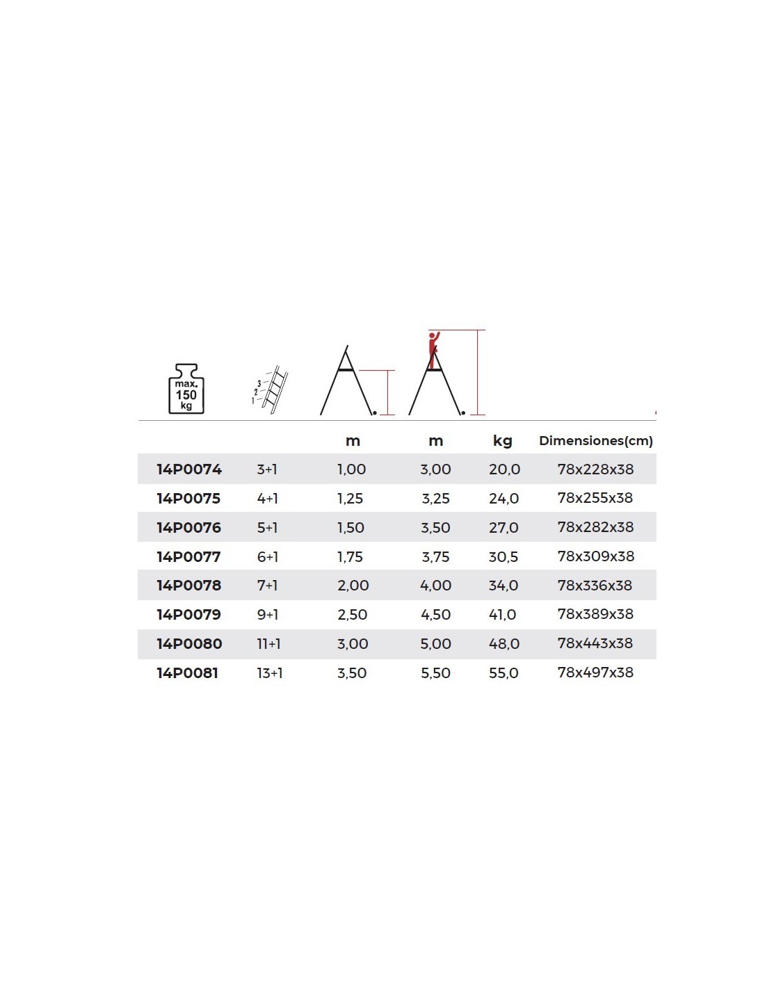 Carga máxima de 150 kg. Certificado de acordo com os regulamentos EN 131-7