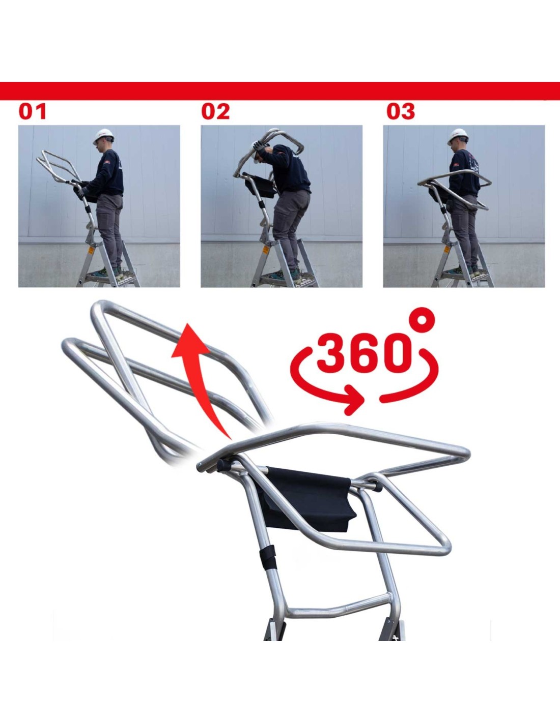 Fabricada em alumínio de alta resistência, a PL-COMPACT destaca-se pela sua robustez, facilidade de utilização e design focado em oferecer total segurança em todas as operações. Está disponível em versões que variam entre os 3+3 e os 6+6 degraus, e conta com rodízios duplos e um sistema de bloqueio robusto que melhora a manobrabilidade, sendo uma opção prática e fiável para diversas aplicações profissionais. Consulte a ficha técnica na secção DOCUMENTAÇÃO.