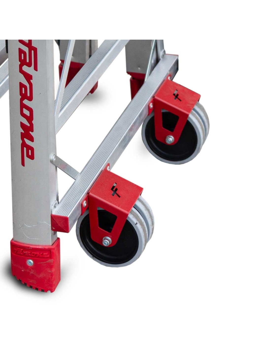 - Sistema de fixação robusto e rodas duplas para facilitar o transporte.