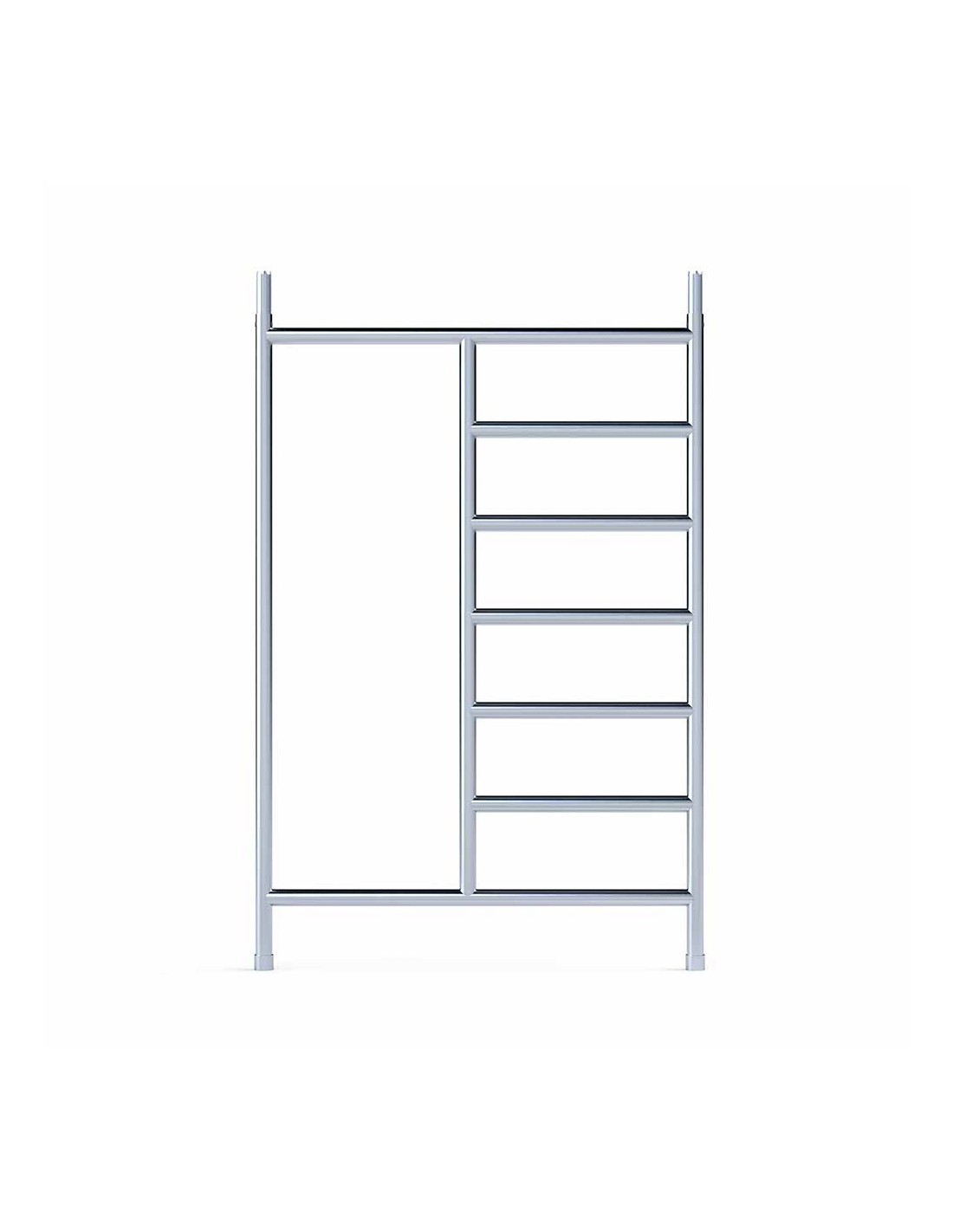 Aro padrão PASSAGE para andaimes móveis com largura de 135 cm, permite a passagem entre vários andaimes ou torres. Este quadro tem 7 degraus e a distância entre eles é de 28 cm.