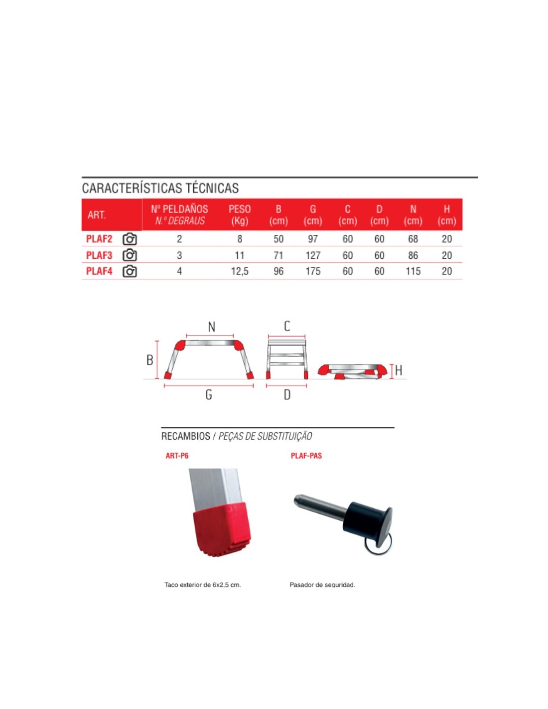 Plataforma dobrável de alumínio para uso profissional 4 degraus PLAF4 Faraone