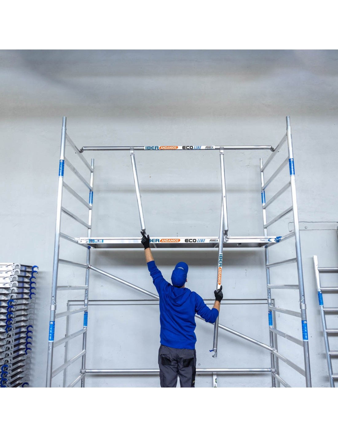 Torre de andaime Eco EXTRA COM TRILHOS DE MONTAGEM ECO EXTRA SAFE (Corrimão antes de subir, mais seguro)