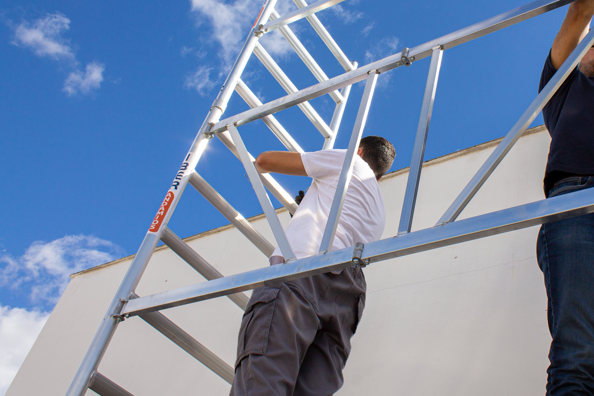 - Totalmente seguro. El montaje de un andamio de aluminio cumple con las condiciones exigidas por la norma EN 1004.